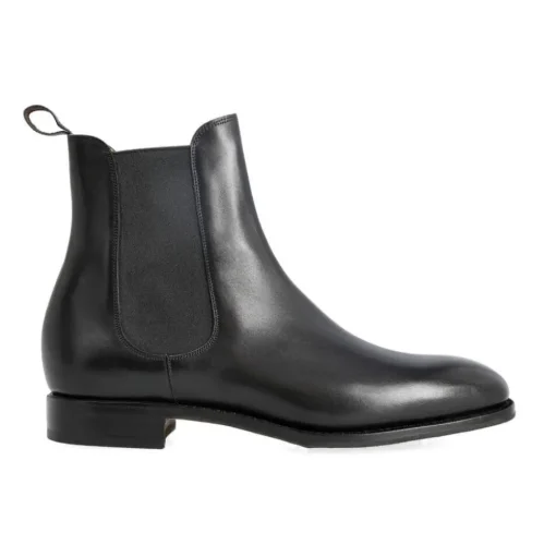 Botas chelsea en vitello negro.Con suela Alfil, mitad suela y mitad goma para mayor confort. Tacón de 20mm, forro de cabra. En construcción GoodyearEste zapato, como todos los Carmina, está manufacturado cuidadosamente por artesanos expertos, los cuales siguen las mismas técnicas que Charles Goodyear concibió en 1869.Modelo montado en Hills. Horma de calce más bien estrecho con empeine bajo para una mayor sujeción del pie. Se caracteriza también por una punta semi cuadrada, lo que la hace ideal para modelos tanto elegantes como semisport.