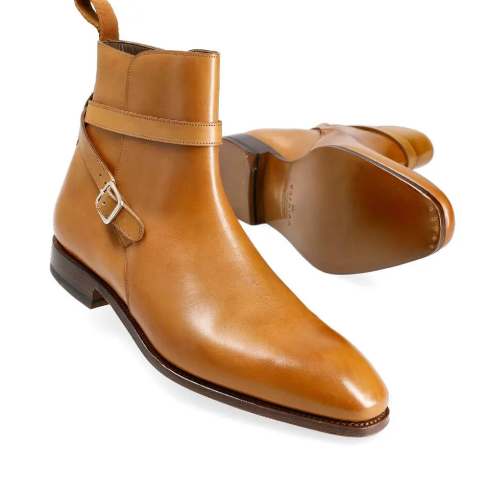 Botas jodhpur en vegano cuero. Acabado con una suela de cuero y forro de becerro. Este zapato al igual que todos los Carmina está manufacturado cuidadosamente por artesanos expertos y siguiendo las mismas técnicas del cosido Goodyear. Para este estilo hemos elegido la estilizada horma Simpson. Una de nuestras hormas de calce estrecho D. Recomendamos subir media talla en comparación con las demás hormas de calce EE.