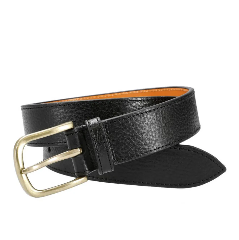Cinturón de piel para hombre en Elbamat negro. En Carmina usamos los mismos Veganos y Box Calfs de Tannerie D’Annonay para nuestros cinturones, y los acabamos con una capa de cera para asegurar una patina que ira embelleciéndose con el uso y el roce. Los forramos con piel de becerro y acabamos con una hebilla de laton en acabado Oro. La longitud del cinturón se mide desde el agujero central hasta el final hebilla. Por favor tome medidas de su cintura con pantalones y añada unos centímetros (3-5cm) para conocer su talla de cinturón.