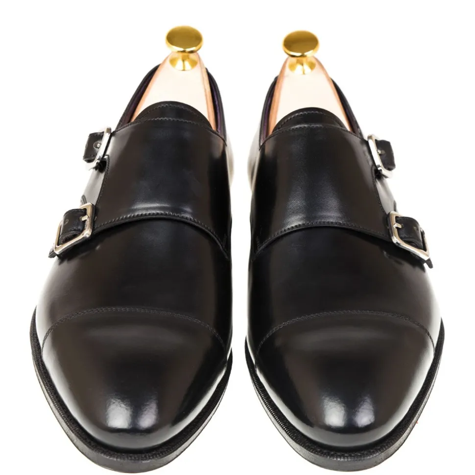 Zapatos de doble hebilla con puntera recta en Horween Shell Cordovan color negro.Acabado con suela de cuero de Remdenbach Jr. y forro de becerro.Este zapato al igual que todos los Carmina está manufacturado cuidadosamente por artesanos expertos y siguiendo las mismas técnicas que Charles Goodyear concibió en el año 1869.Para este modelo hemos elegido la horma Inca. Horma clásica y elegante, de aspecto alargado con la punta fina y semiredonda.