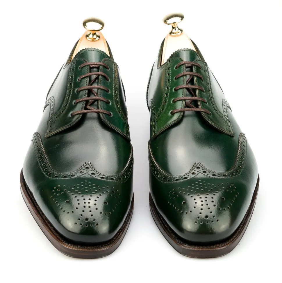 Zapatos Blucher con puntera recta trapada y festoneada en Horween Shell Cordovan (incl. pernitos).Con una fabricación muy artesanal terminada en una suela de JR Rendenbach.Este zapato al igual que todos los Carmina está manufacturado cuidadosamente por artesanos expertos y siguiendo las mismas técnicas que Charles Goodyear concibió en el año 1869.Para este estilo hemos elegido la horma Forest, una de las hormas más antiguas de la casa. Redondeada en la punta, con empeine normal y generosa de espacio en la parte delantera.