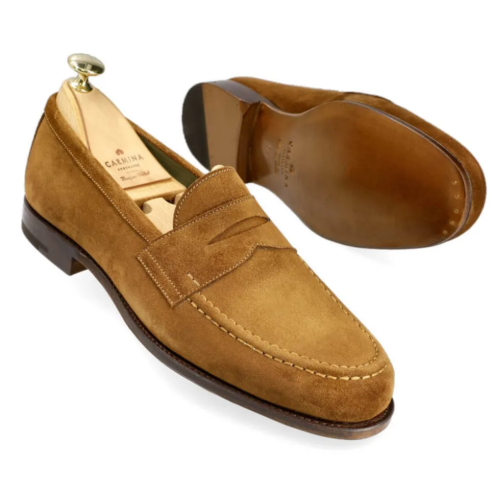 Mocasín con antifaz en ante snuff.Acabado con suela de cuero y forro de becerro.Este zapato al igual que todos los Carmina está manufacturado cuidadosamente por artesanos expertos y siguiendo las mismas técnicas que Charles Goodyear concibió en el año 1869.Modelo montado en nuestra horma Pina. Horma redonda para mocasines mas sport, con calce normal en el empeine y la zona de los dedos. Disponible en ancho EE con buen calce y sujeción al pie.