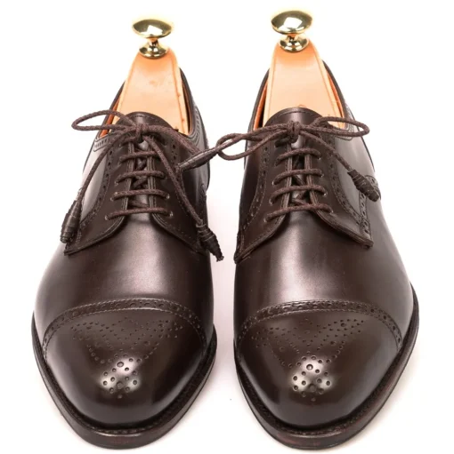 Zapato plano de cordones blucher con puntera recta y trapado en piel de becerro marrón.Con suela Alfil, mitad suela de cuero y mitad de goma para un mayor confort, con un tacón de 20 mm y con forro de cabra.Este zapato, al igual que todos los Carmina, está manufacturado cuidadosamente por artesanos expertos los cuales siguen las técnicas que Charles Godyear creó en 1869.Para este modelo hemos elegido nuestra horma Madison 20. Horma de punta redonda, versátil en cuanto a estilo ya que funciona tanto en modelos elegantes como en semi sport.
