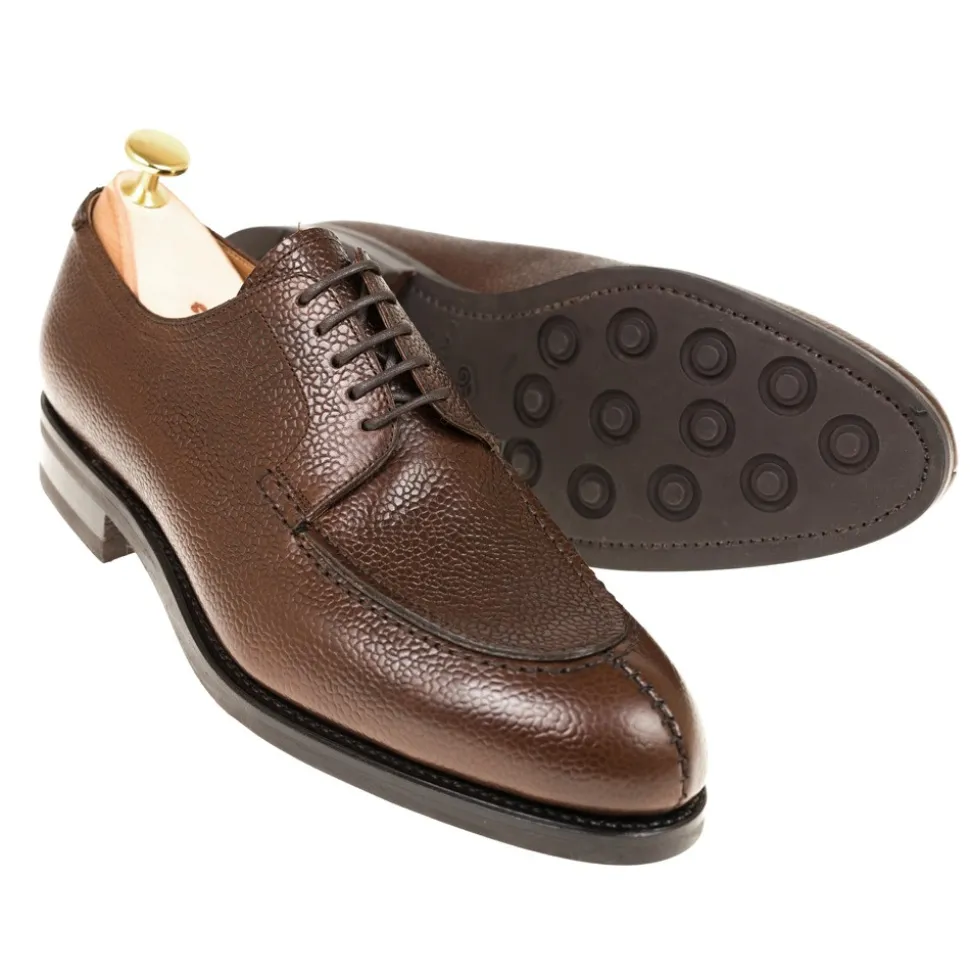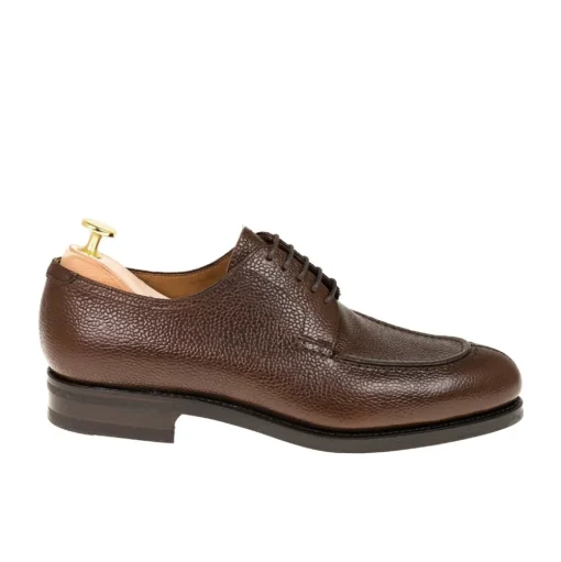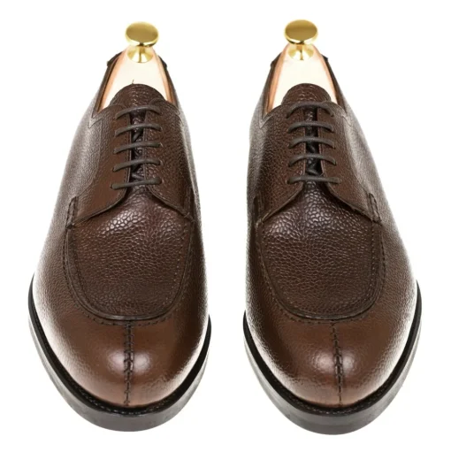 Zapatos blucher noruegos de 5 ojetes en karagrain marrón.Acabado con suela de goma Silver y forro 100% de cuero.Este zapato al igual que todos los Carmina está manufacturado cuidadosamente por artesanos expertos y siguiendo las mismas técnicas que Charles Goodyear concibió en el año 1869 .Para este estilo hemos elegido la horma Forest, una de las hormas más antiguas de la casa. Redondeada en la punta, con empeine normal y generosa de espacio en la parte delantera.