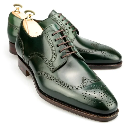 Zapatos Blucher con puntera recta trapada y festoneada en Horween Shell Cordovan (incl. pernitos).Con una fabricación muy artesanal terminada en una suela de JR Rendenbach.Este zapato al igual que todos los Carmina está manufacturado cuidadosamente por artesanos expertos y siguiendo las mismas técnicas que Charles Goodyear concibió en el año 1869.Para este estilo hemos elegido la horma Forest, una de las hormas más antiguas de la casa. Redondeada en la punta, con empeine normal y generosa de espacio en la parte delantera.