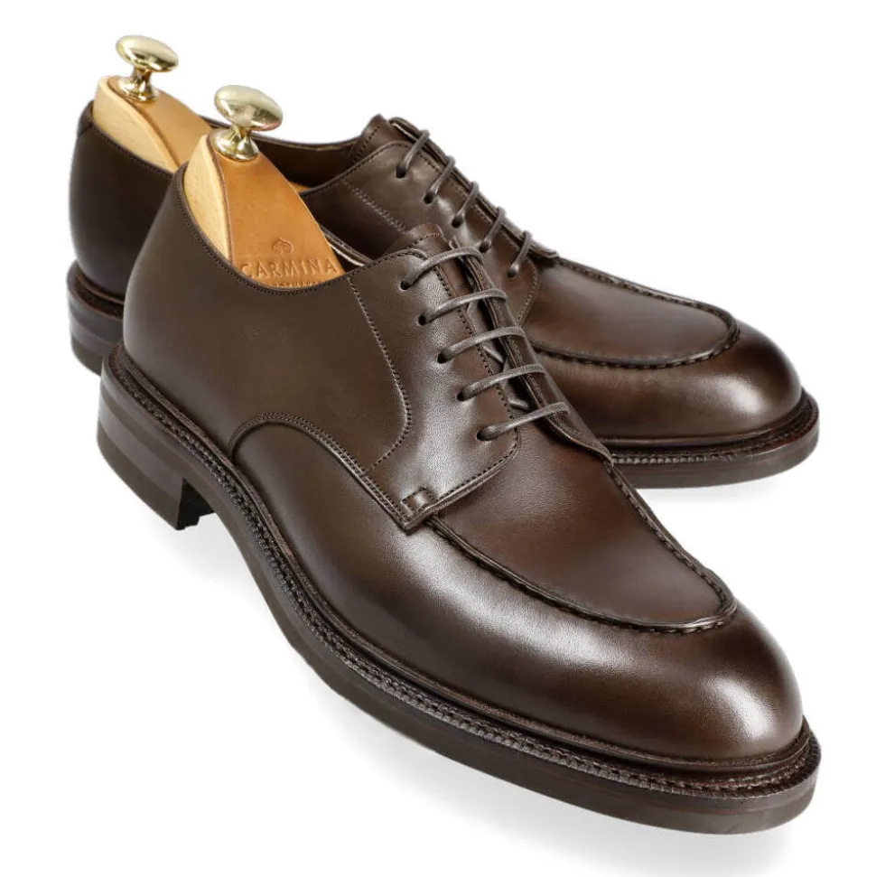 Zapatos blucher en funchal marrón.Acabada sobre suela de goma Victoria y con forro de becerro.En construcción Goodyear Welted. Este zapato, como todos los Carmina, está manufacturado cuidadosamente por artesanos expertos, los cuales siguen las mismas técnicas que Charles Goodyear concibió en 1869.Para este modelo hemos elegido la horma Calvia con look sport de puntera redonda y calce confortable.