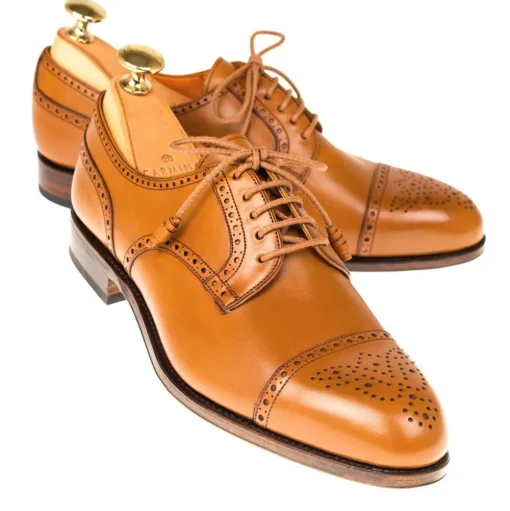 Zapatos blucher puntera recta trapado en vitello color cuero.Acabado con una suela de cuero de alta calidad con el logotipo estampado de Carmina y forro de becerro.Este zapato, al igual que todos los Carmina, está manufacturado cuidadosamente por artesanos expertos los cuales siguen las técnicas que Charles Goodyear creó en 1869.Para este modelo hemos elegido nuestra horma Madison 20. Horma de punta redonda, versátil en cuanto a estilo ya que funciona tanto en modelos elegantes como en semi sport.