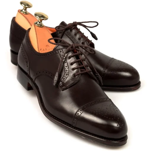Zapato plano de cordones blucher con puntera recta y trapado en piel de becerro marrón.Con suela Alfil, mitad suela de cuero y mitad de goma para un mayor confort, con un tacón de 20 mm y con forro de cabra.Este zapato, al igual que todos los Carmina, está manufacturado cuidadosamente por artesanos expertos los cuales siguen las técnicas que Charles Godyear creó en 1869.Para este modelo hemos elegido nuestra horma Madison 20. Horma de punta redonda, versátil en cuanto a estilo ya que funciona tanto en modelos elegantes como en semi sport.